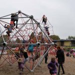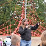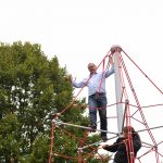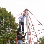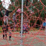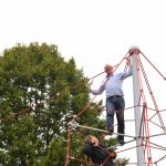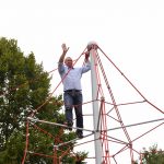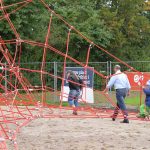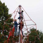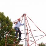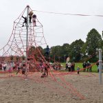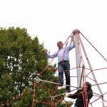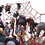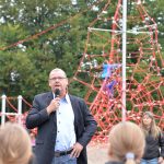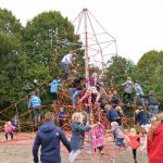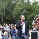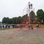 Nu kom så det øjeblik de fleste havde ventet på. Borgmesteren kravlede nu sammen med Louise op i det 7,3 meter høje klatretårn for at klippe den røde snor over. Her erklærede han første etape af aktivitetsområdet “På Banen” for åben, til stor jubel og klapsalver fra de omkring 350 fremmødte. Borgmesteren nåede ikke ned derfra før der var mindst 30 børn på vej op, og resten af formiddagen gik med tage for sig af de opstillede drikkevarer, frugt og Max havde travlt med at få delt 200 kanelsnegle ud.
