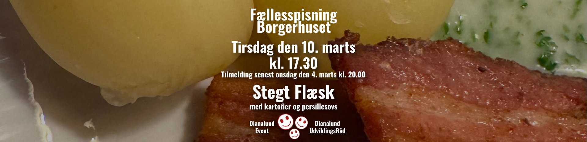 Dianalund Event fortsætter fællespisningen i Borgerhuset, alle er velkomne, man skal bare huske at købe spisebilletter senest onsdag den 4. marts kl. 20