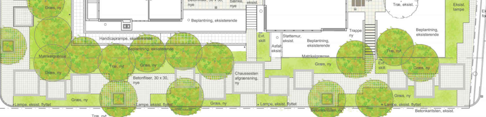 - Forslag til udendørsarealer omkring den nordlige del af Borgerhuset
