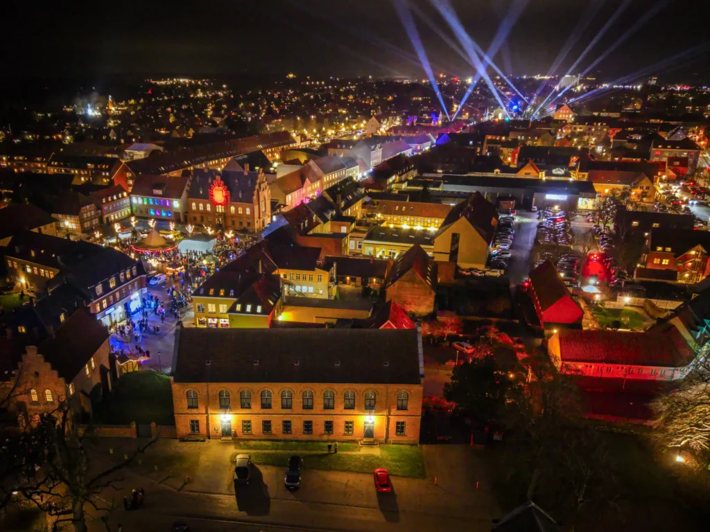 Hun beskriver, hvordan lyskunsten inviterer publikum indenfor, mens duften af pandekager over bål breder sig, musikken strømmer ud fra åbne døre, og gæster får adgang til steder, der normalt er lukket. Resultatet er et eventyrligt univers i virkelighedens rammer, skabt af frivillige, professionelle kunstnere og en lang række lokale aktører.