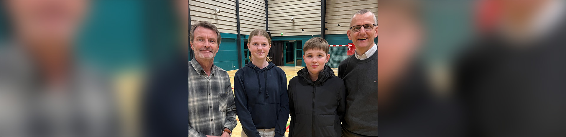 Artikelbillede: Foto fra onsdagens møde på Stenlille Skole: Emma-Rose Boldt Simonsen og Valdemar Bjørnholm, 7.c Frederiksberg Skole, flankeret af t.v. uddannelseschef på ZBC, Klaus Heine Helstrand, og t.h. UU-vejleder Kim Ladefoged. Fotograf: Sorø Kommune.