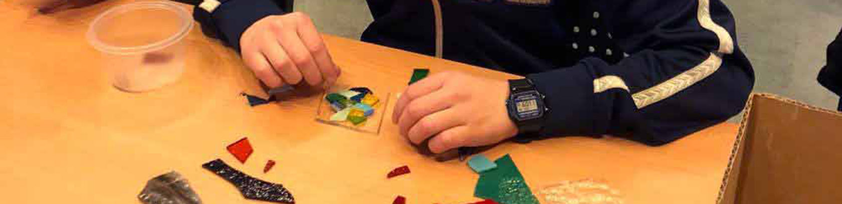 Alle 40 deltagere kunne lave lige hvad de havde lyst til, en fantasifugl, et enøjet monster eller noget helt tredje. Alle gik til den med at klippe og klistre med de mange flotte farvede glasstykker. Det blev til nogle kreative og hyggelige timer i Borgerhuset.